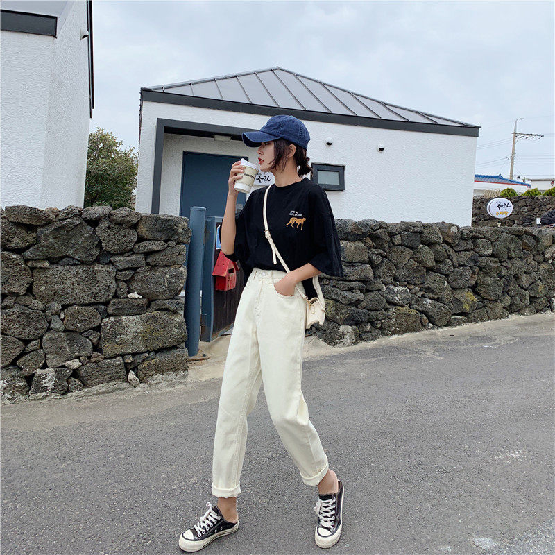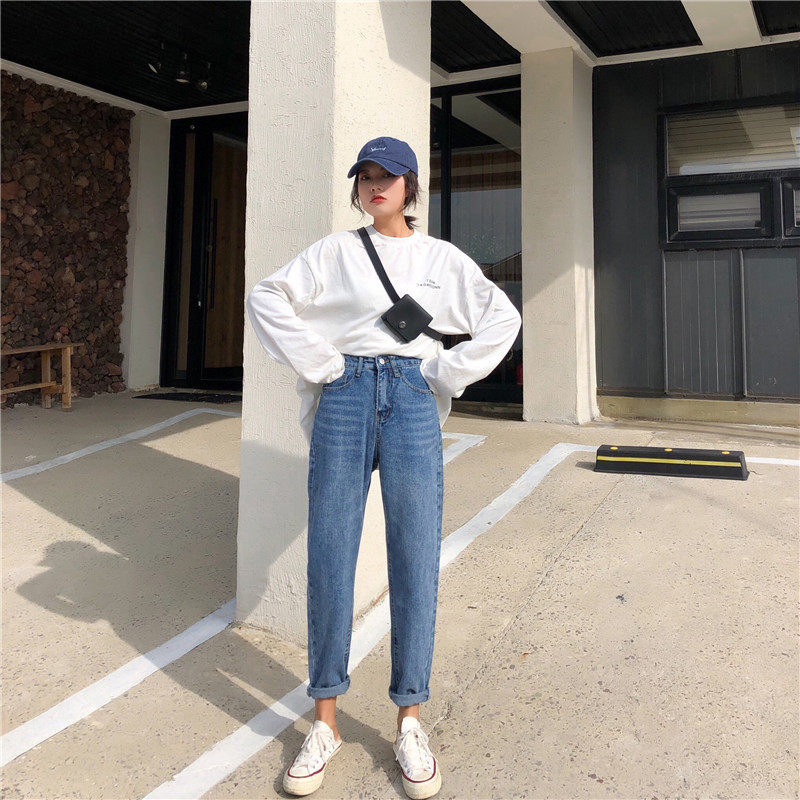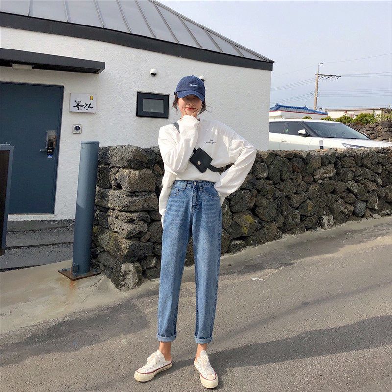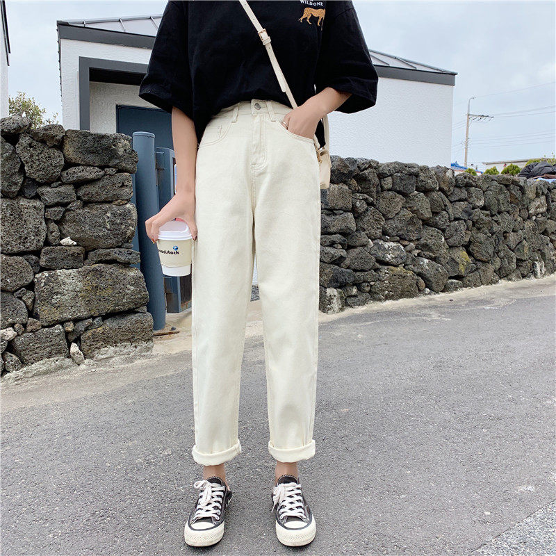 Женские свободные джинсы с высокой талией S-XL, 3 вида цветов джинсы в Корейском стиле, весна 2019