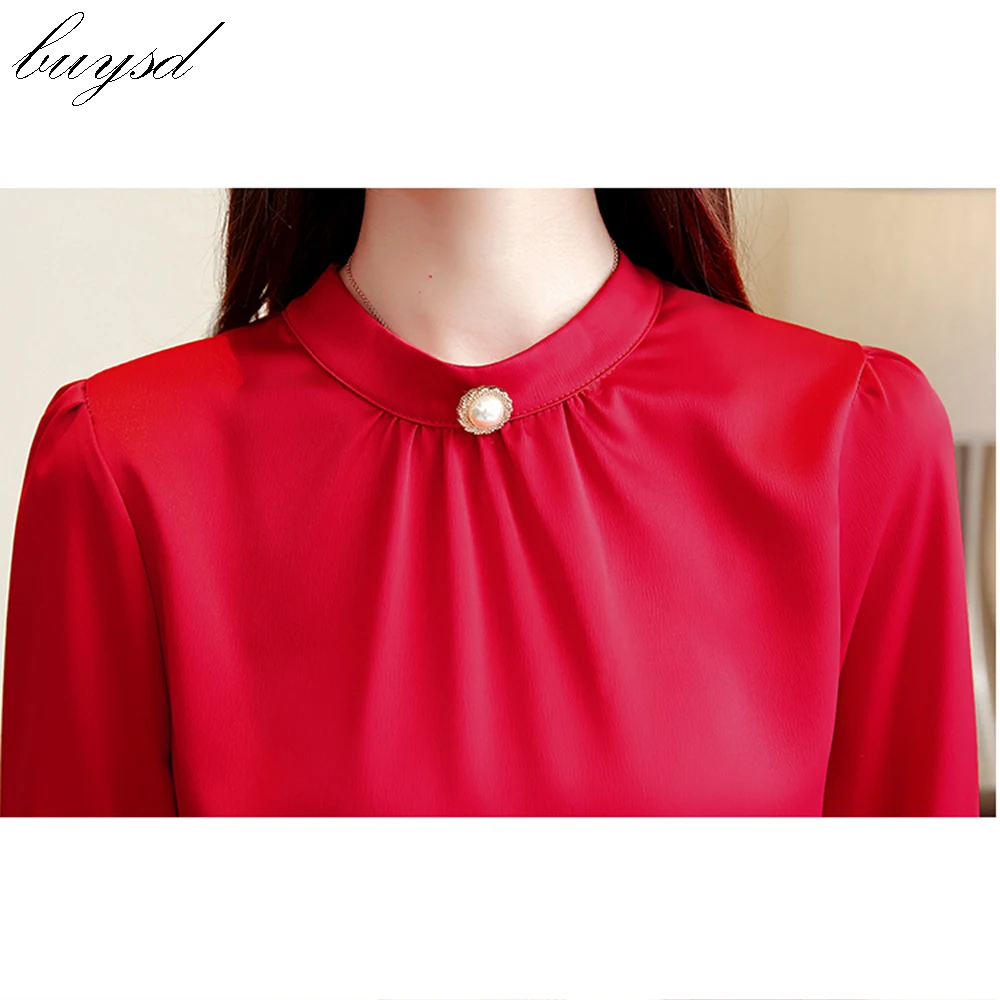 Женские шифоновые блузки BUYSD, повседневные Однотонные блузки с длинным рукавом для офиса, лето 2019