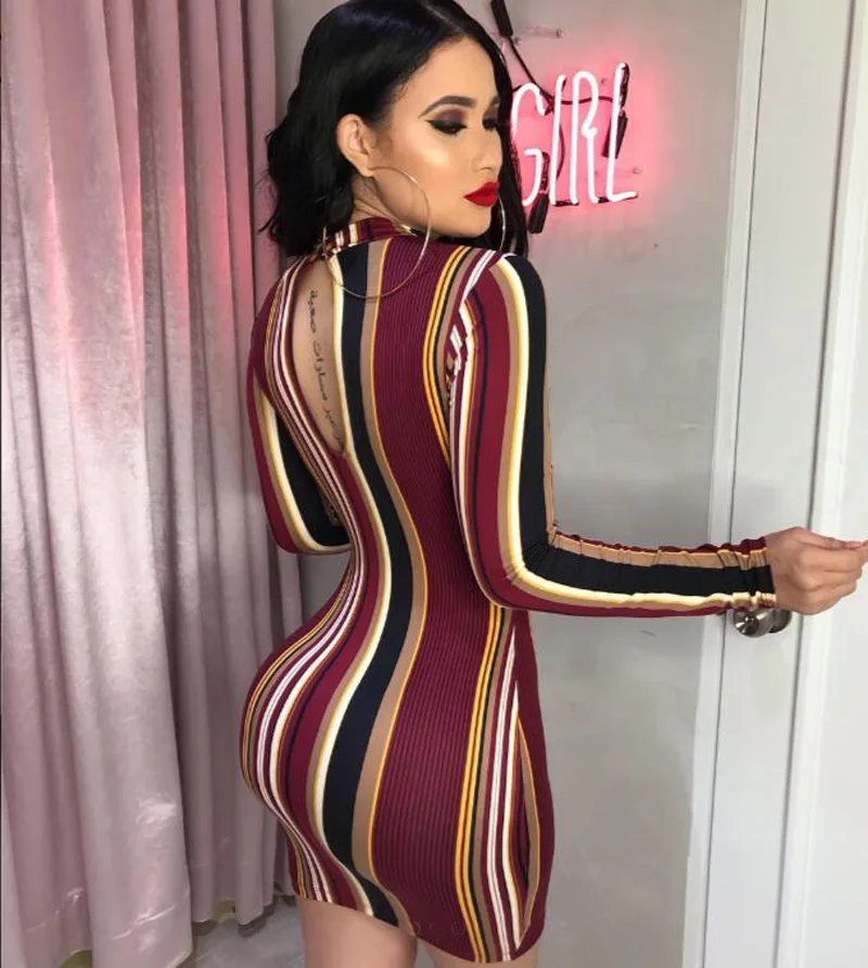 Женский Повседневный облегающий сарафан в полоску, с глубоким v-образным вырезом, с длинным рукавом, коктейльный сарафан для вечеринки, лето 2019