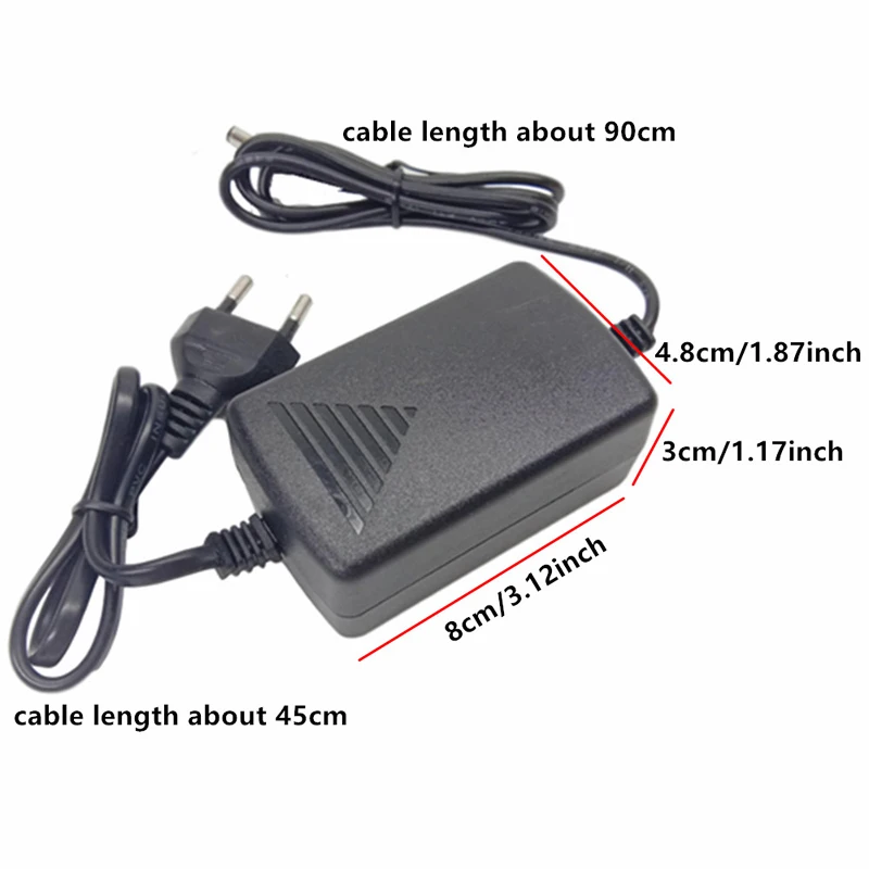 * 100% абсолютно новый блок питания 100-240 В переменного тока в постоянный ток * Вход: 100V-240 В пер. тока, 50/60 Гц * Характеристики штепсельной вилки: штепсельная вилка европейского стандарта, штепсельная вилка американского стандарта * Разъем Адаптера: внутри положительный (+) . Внешний отрицательный (-) * Длина кабеля: около 135 см * Интерфейс: 5,5*2,5 мм, также подходит для 5,5*2,1 мм