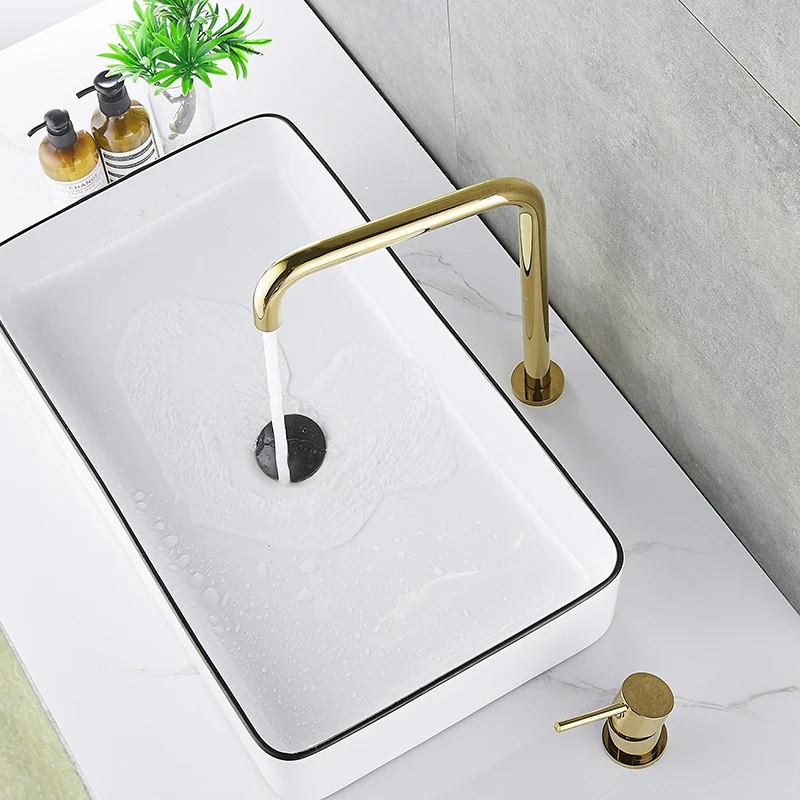 Кран для раковины, ванная комната, Супер длинная труба, два отверстия, матовый золотой/розовое золото/черный/хром, кран для раковины, кран для раковины, вращающийся на 360 градусов, широко распространенный Черный кран для раковины