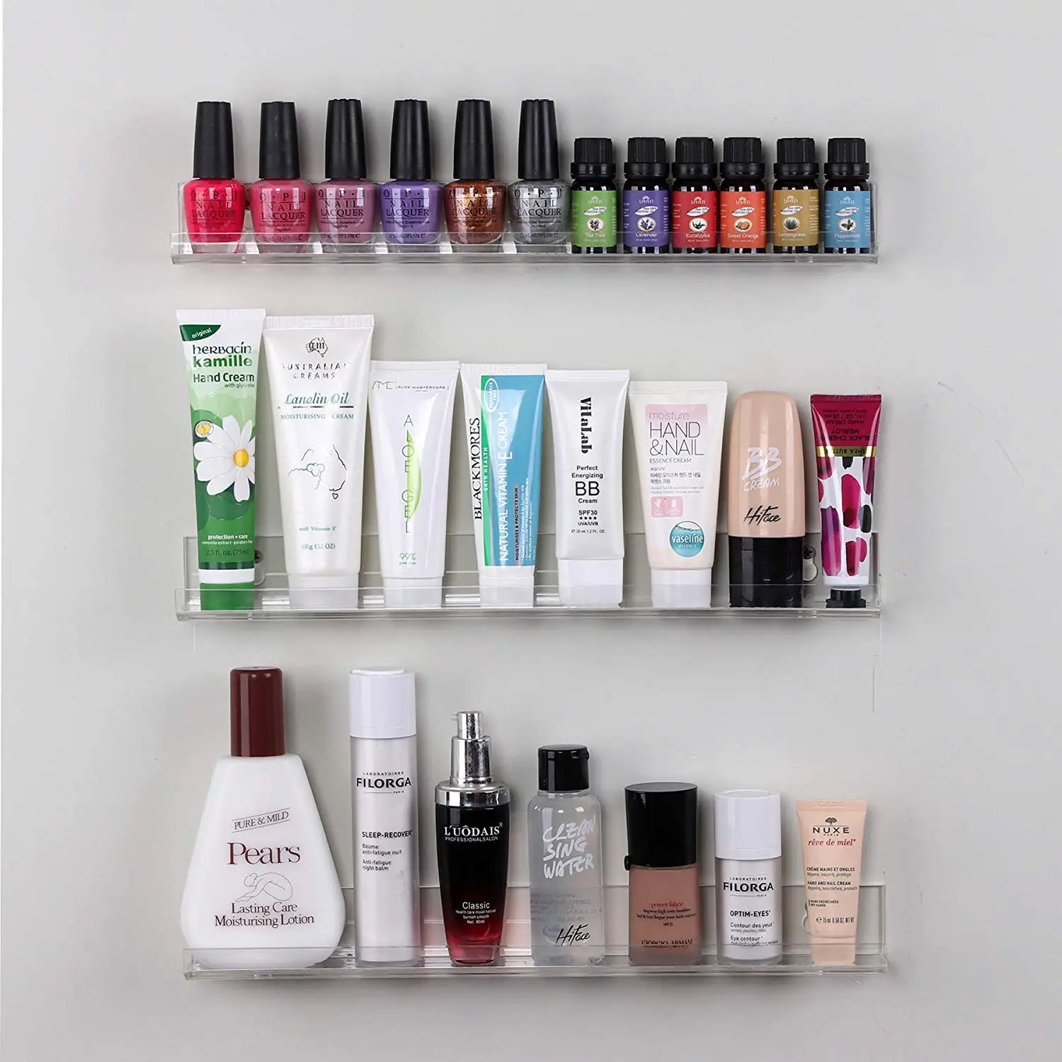 Стойка для лака для ногтей настенная полка со съемными противоскользящими концевыми вставками, прозрачный акриловый Органайзер для лака для ногтей