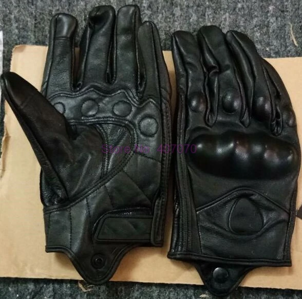 ps:if need mix size ,please note us,thank you . 1. Genuine goatskin leather motorcycle and electric bike cycling gloves Goatskin leather is the best material of riding gloves2. No-PerforatedNon-perforated type for all season include Spring,Autumn,Winter and even Summer3. Perforated Perforated type available,suitable for Spring,Summer,Autumn season4. Knuckle protectHard plastic material of knuckle protector,strong protect,and thicken cotton layer inside to protect hand5. Finger protectThicken reinforcement padding protector of fingers6. TouchtecIndex finger pads are touch sensitive and allow you to operate touchscreen devices without removing your gloves.7. Anti-skidAnti-skid material across the palm of the glove ensures a tight grip to keep you in control8. VelcroVelcro straps make these gloves easy and fast to put on or take off.They allow adjustment for different sized hands but ensure a snug fit for everyone.9. Buckle designBuckle the button to keep the gloves of left and right together,so you will not lose anyone10. LiningThick glove lining provides comfort and protection from the wind |