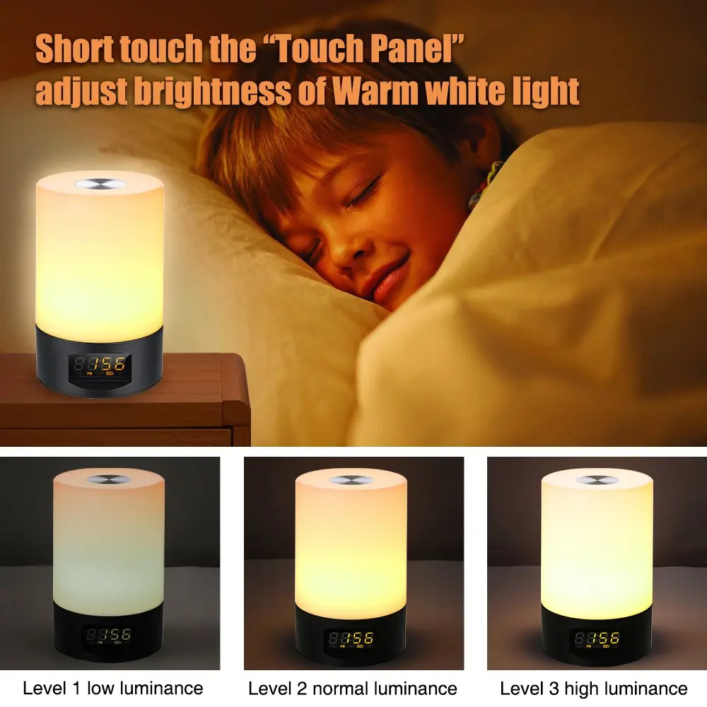 Применение Многофункциональный Будильник Ночной Свет теплый подарок. Кроме того, можно использовать в качестве пробуждения, но также можно использовать в качестве прикроватных огней, ламп для чтения, многоцветных ночников, праздничное освещение, атмосферных огней, романтических ночных огней, внутренние огни особенно подходят для подарка на день рождения или праздничного подарка.