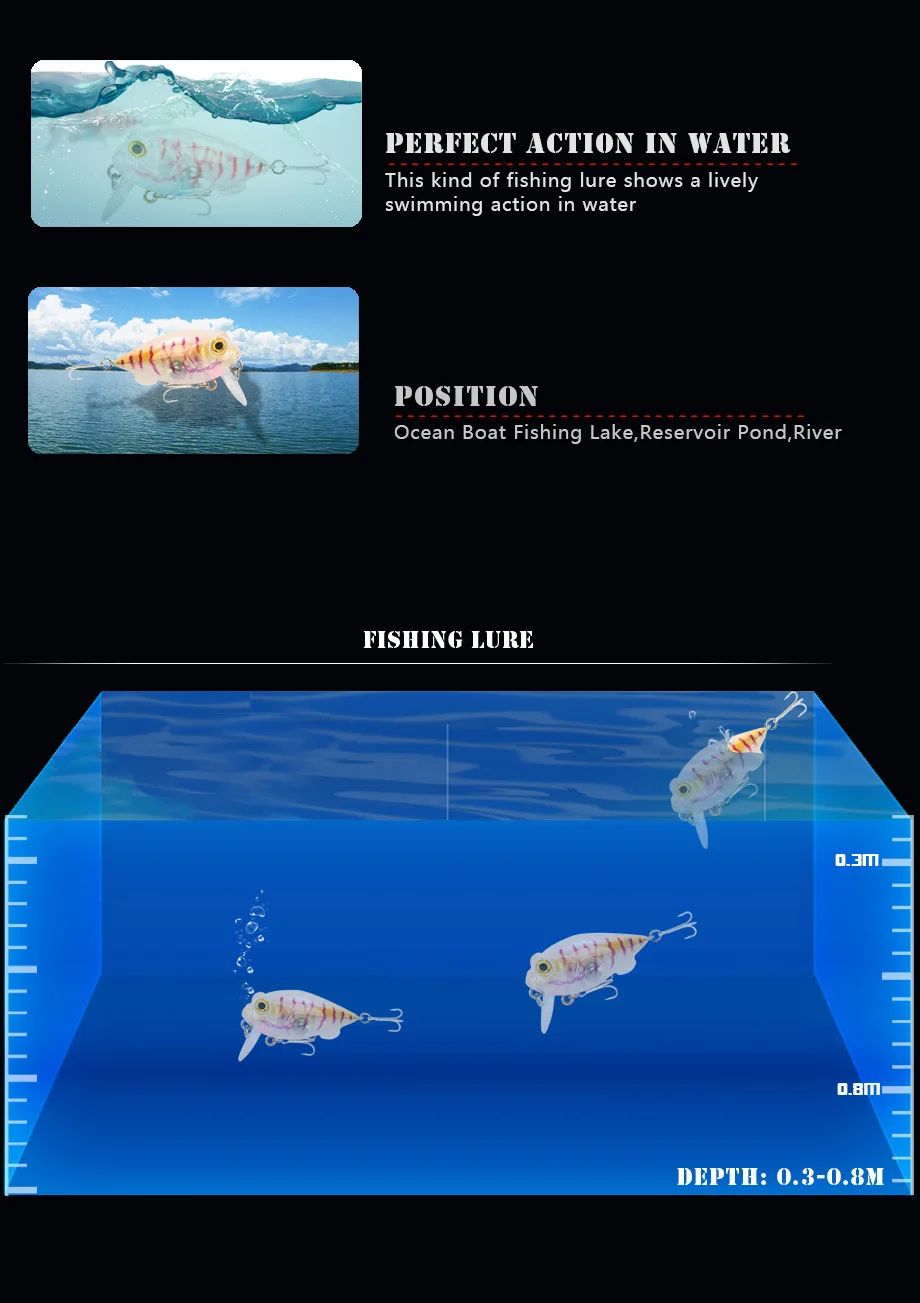 Реалистичная бионическая поза для плавания, при снятии приманки, мягко подергивает удочку, паузу, и Приманка медленно тонет ..