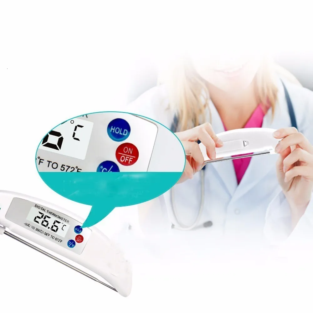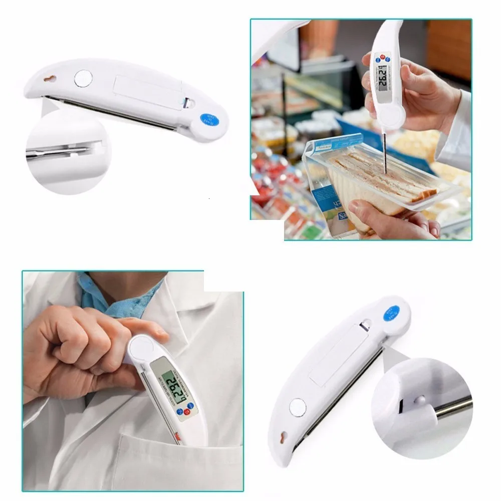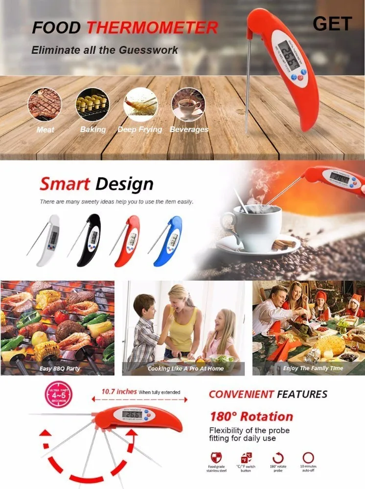 Получите цифровой термометр с складная 4,6 "пищевая нержавеющая сталь зонд и авто-функцией включения/выключения, откройте зонд, чтобы включить со складками на зонда, чтобы выключить, простых в использовании, для хранения и переноски. Вы также можете откалибровать Кухонный Термометр и узнайте Максимальная и минимальная температура при приготовлении.
