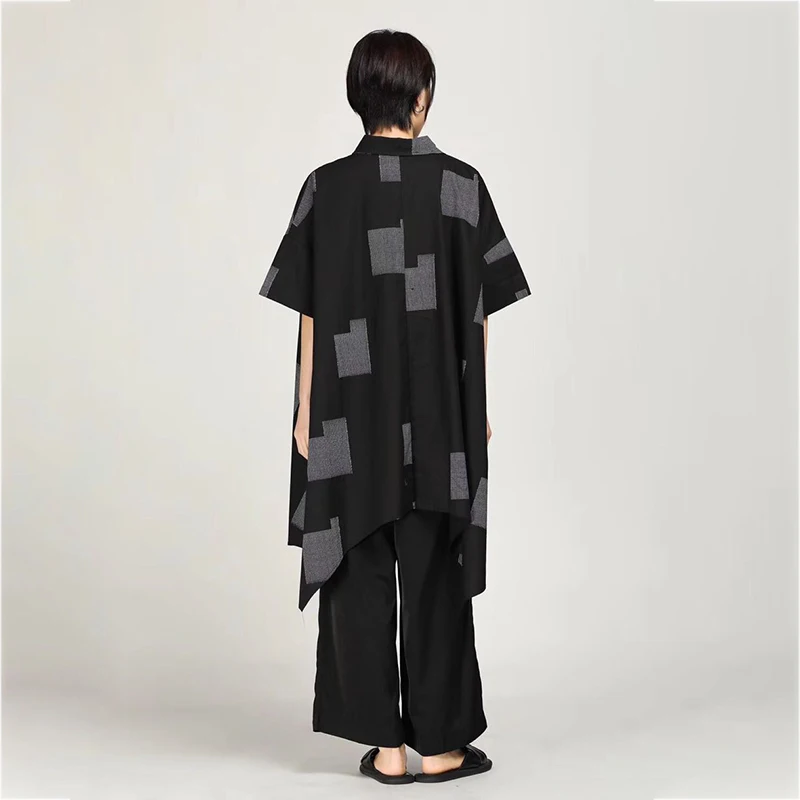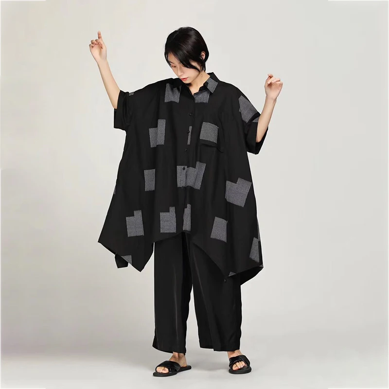 [EAM] Женская черная блузка с разрезом из ленты большого размера новая свободная