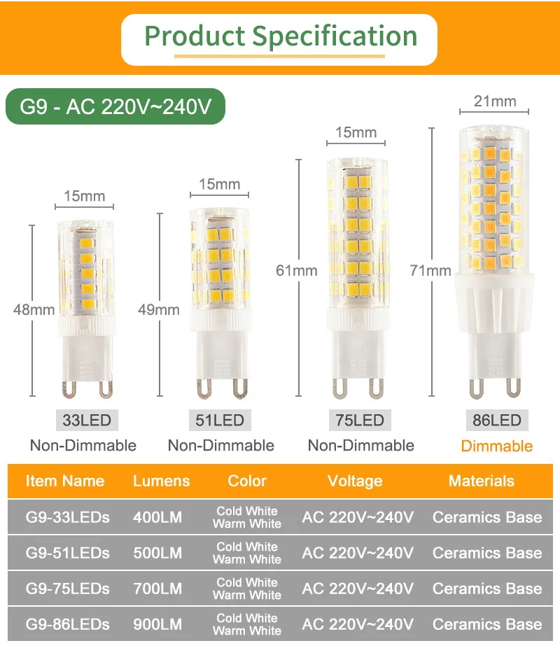 [Kaguyahime]Kaguyahime 220 В регулируемая светодиодная керамическая G9 G4 E14 лампа с регулируемой яркостью 3 Вт 5 Вт 7 Вт 9 Вт Светодиодная G9 G4 лампа для люстры замена галогенная