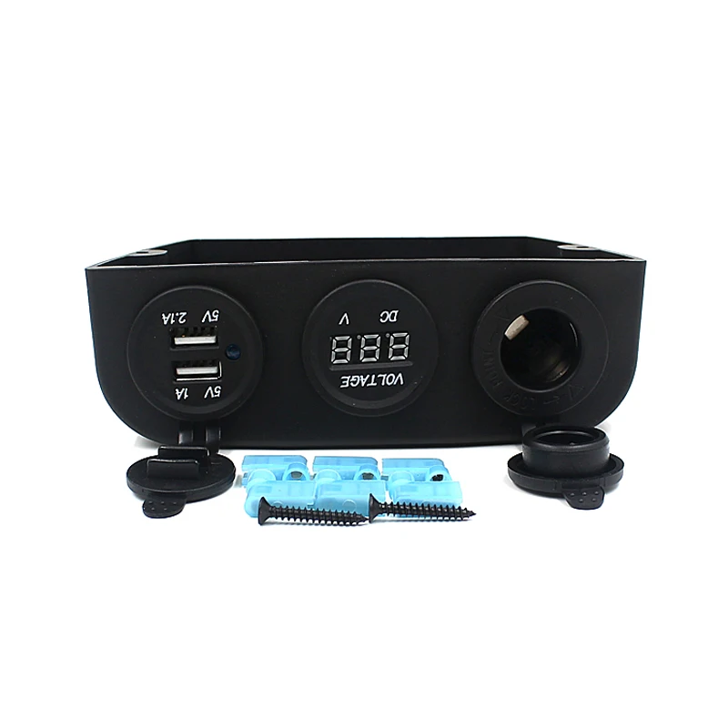 С вольтметром, адаптером прикуривателя, 2 usb-разъема