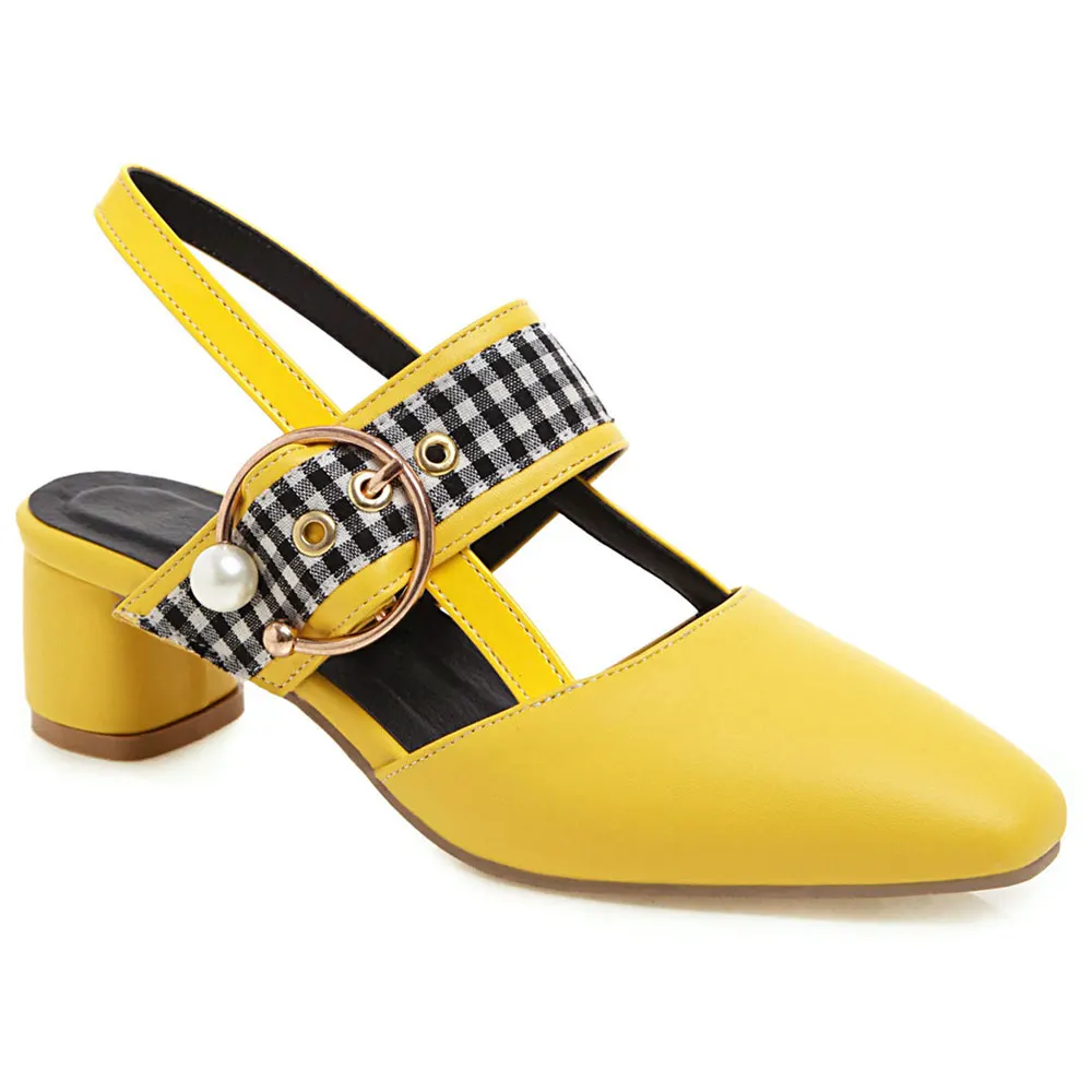 Женские босоножки на блочном каблуке Sgesvier, желтые, белые вечерние туфли на каблуке, большие размеры 31-48, модель G355, 2019
