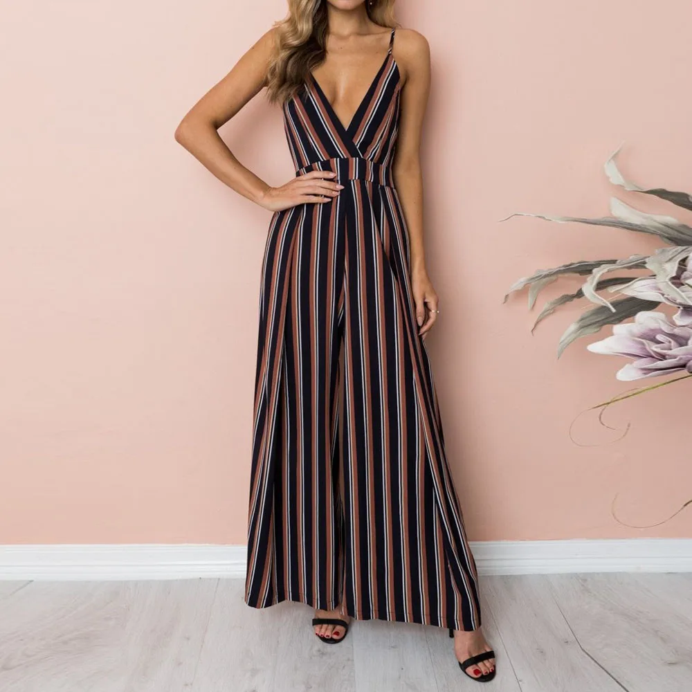 Женские полосатые длинные праздничные костюмы пляжного типа, платье-комбинезон для брюк