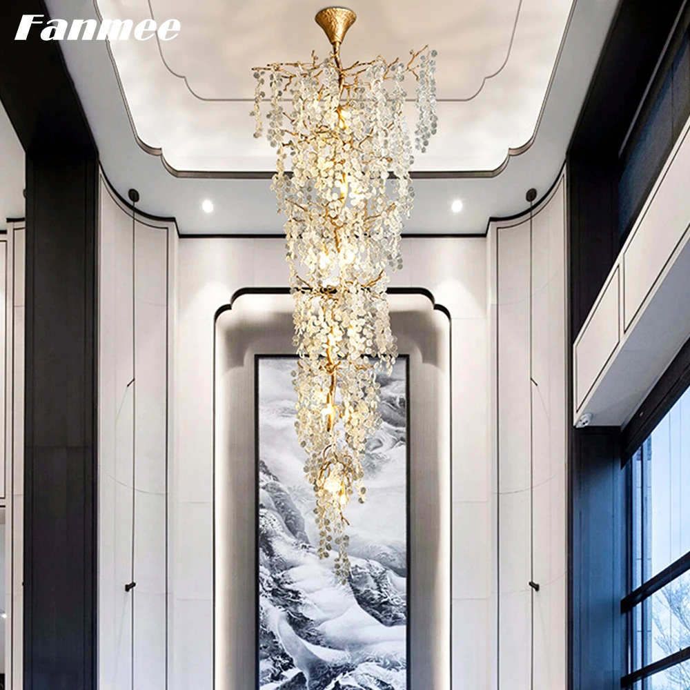 Postmordern Роскошная медная люстра, светильник светодиодный, прозрачное стекло, большая Подвесная лампа, арт-деко, лестница, гостиная, гостиничный зал
