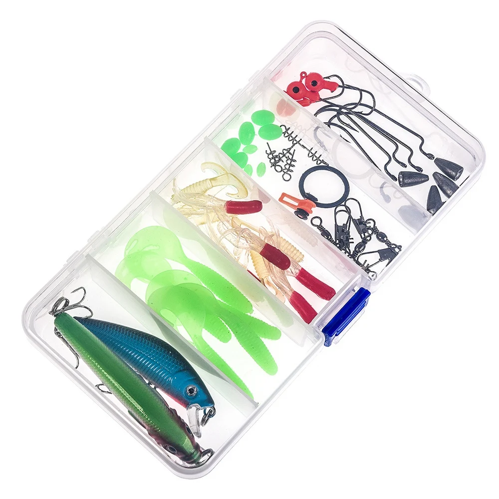 Рыболовные аксессуары: В комплект входят различные приманки, вертлюги, крючки.