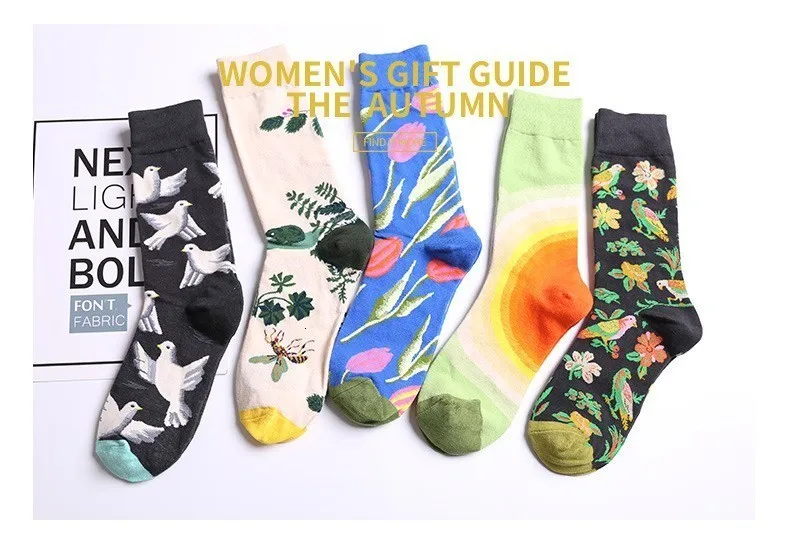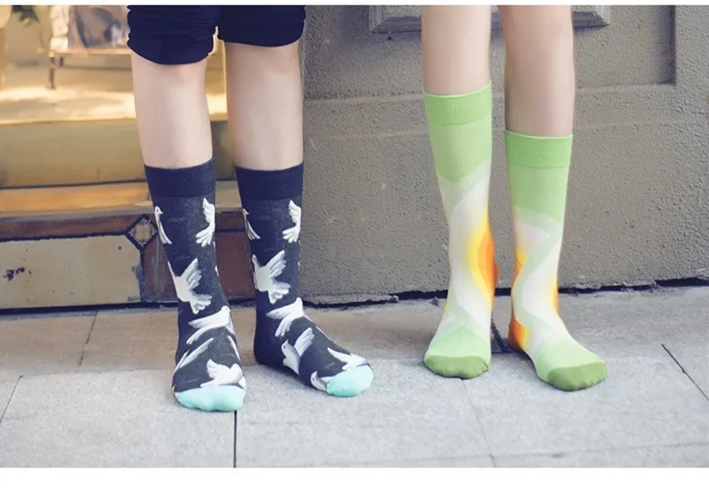 Новинка 2019, мужские носки, женские носки с животным, лягушкой, пчелами, голубем, тюльпаном, новые носки, чёсаные хлопчатобумажные забавные носки, унисекс, повседневные, деловые носки