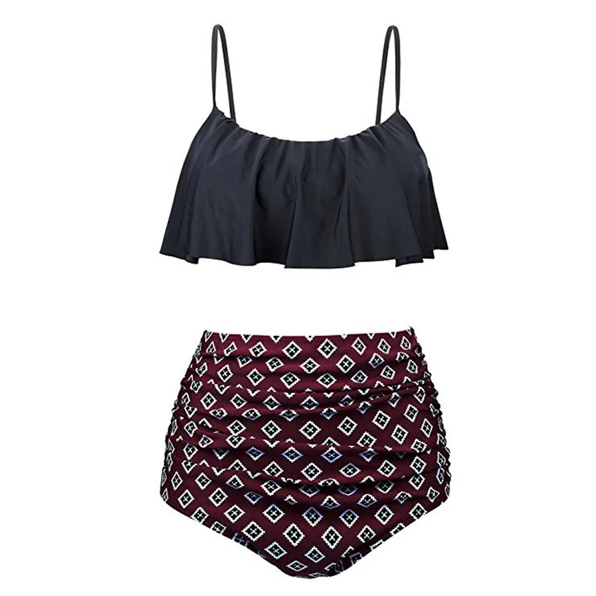 Женское бикини с высокой талией, сексуальное повседневное бикини с лямкой на шее, Ретро стиль, 2019