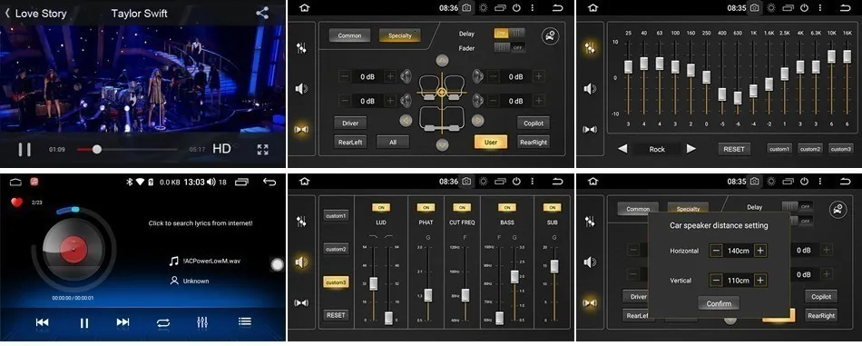 Встроенный DSP (цифровой звуковой процессор) 15 эквалайзеров эквалайзера для музыки, видео дисплей альбома искусства, название песни, имя певца, лирическая информация от игрока по умолчанию.