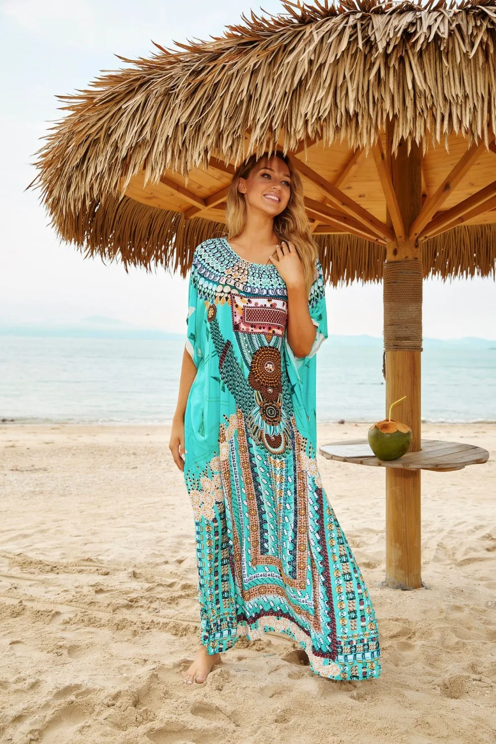 Платье-Кафтан большого размера, туника, длинное кимоно Макси, кафтан, ночная рубашка, Пляжное вечернее Повседневное платье