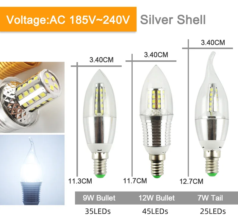 Тип цоколя: E14 алюминиевый светодиодный светильник в форме свечи