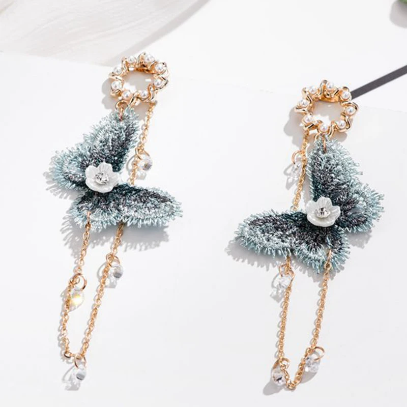 Цинковый сплав розовый висячий синий кристалл Новое поступление 1 Пара висячие серьги Бабочка длинный золотой челнок вышивка трендовый темперамент