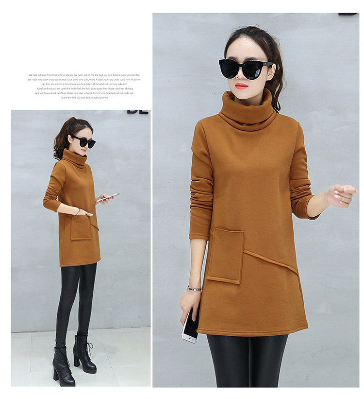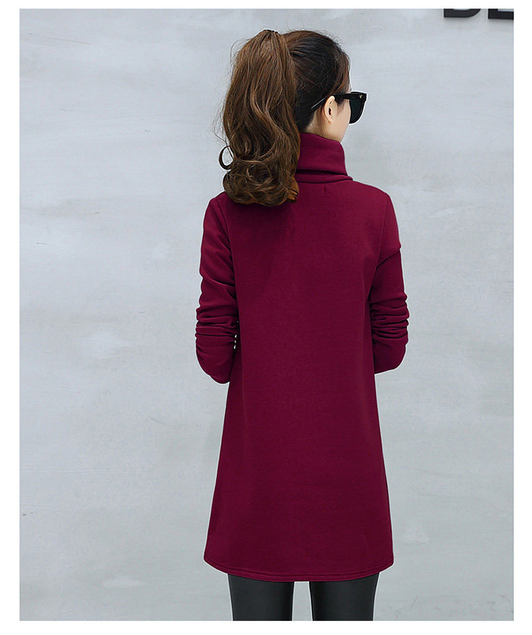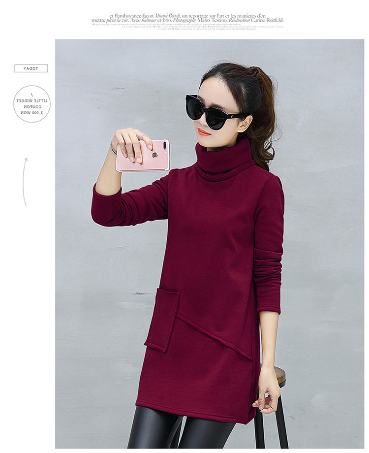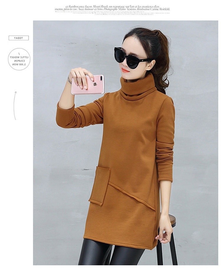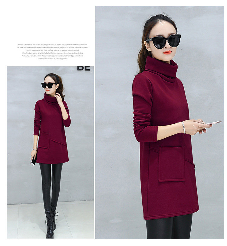 Велюровое флисовое платье зимнее женское платье с длинным рукавом и карманом маленькое черное хлопковое теплое бархатное платье-туника с высоким воротником DV531