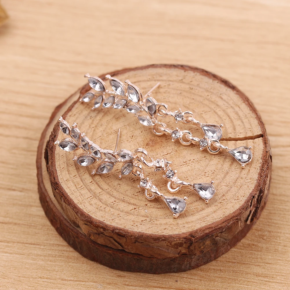 Женские Висячие серьги с крыльями ангела, длинные висячие серьги с кристаллами и листьями, серьги с фианитами в богемном стиле