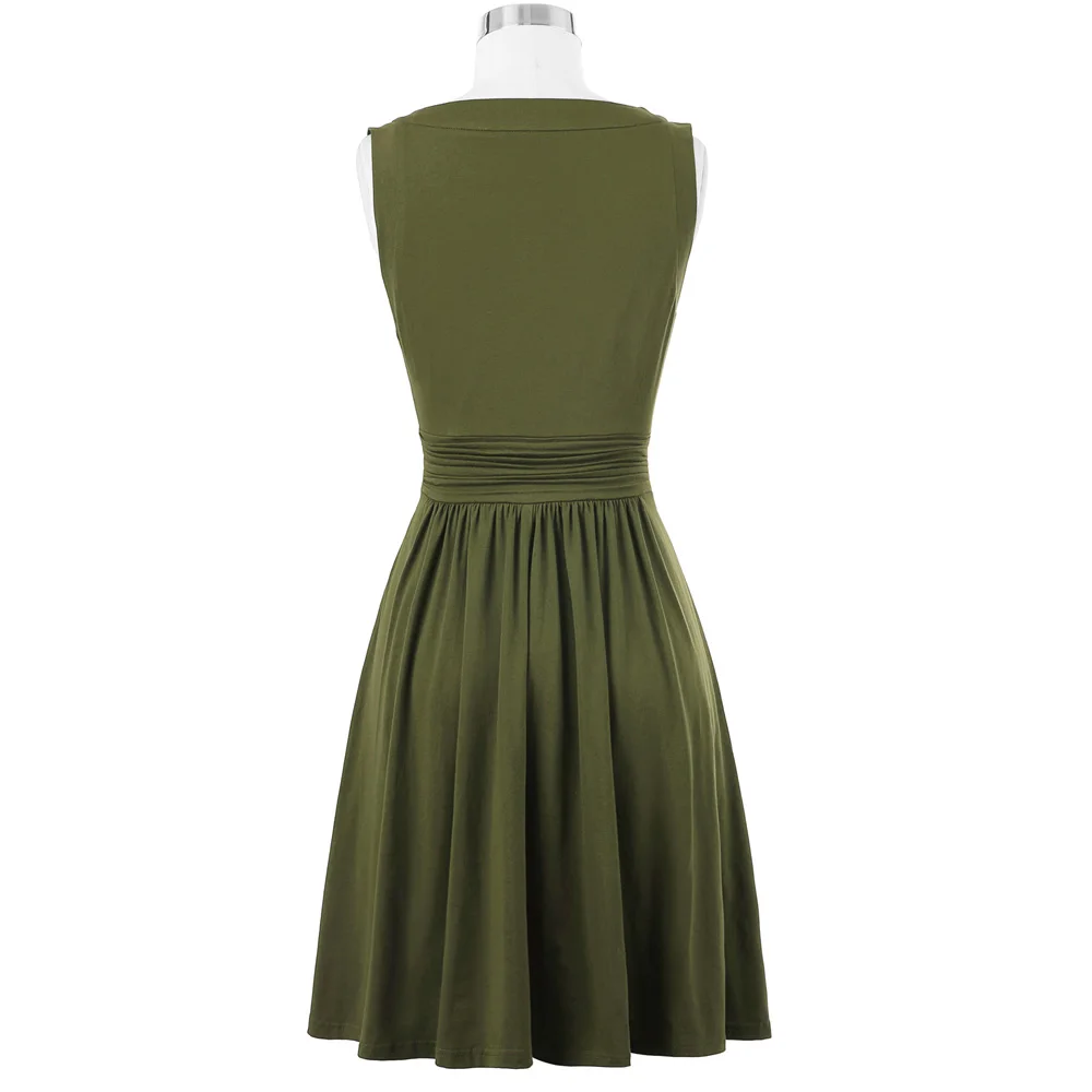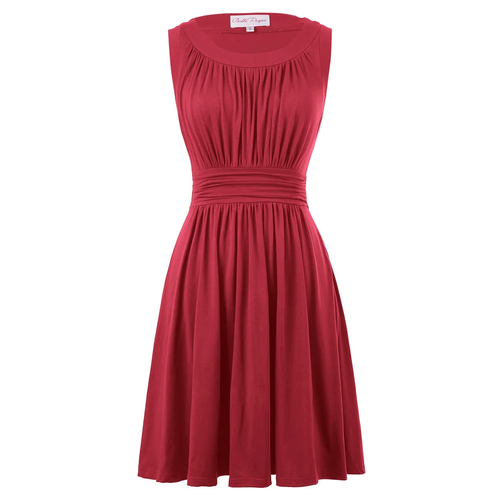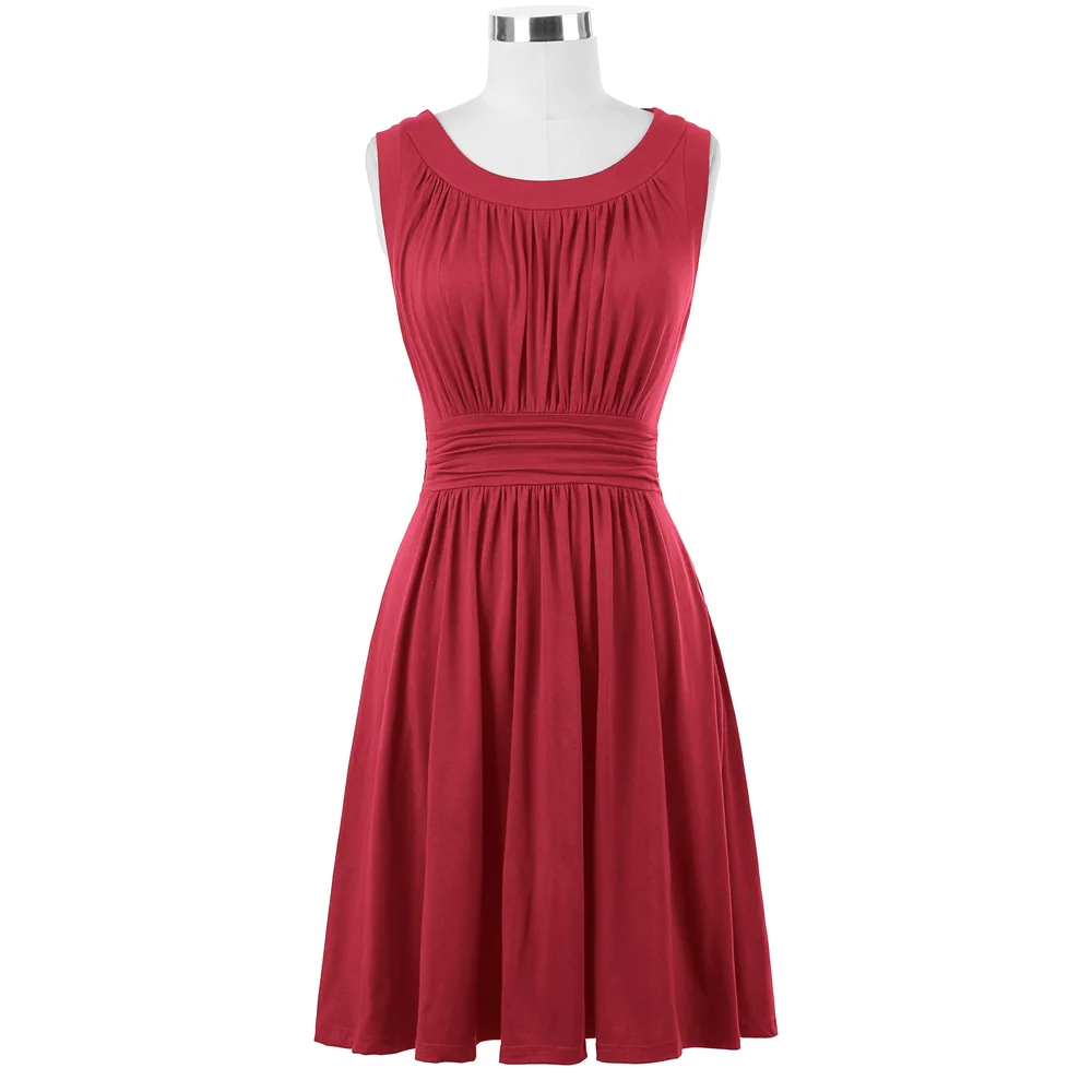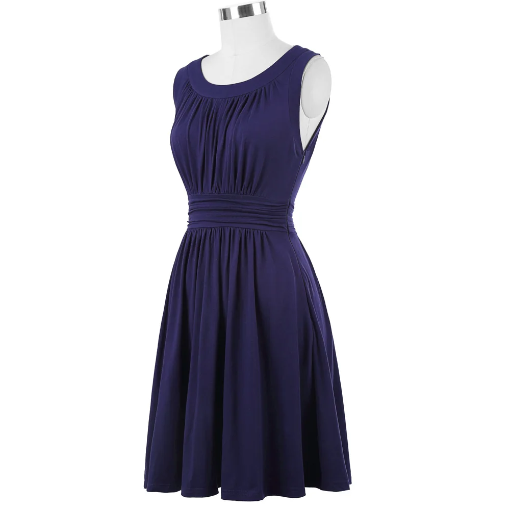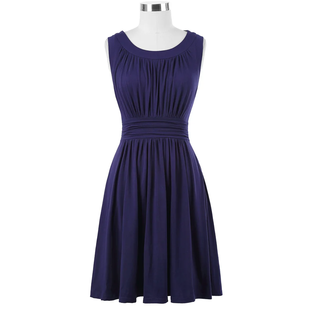 Платье Особенности | 1) без рукавов 2) с круглым вырезом 3) плиссированный дизайн 4) скрытая молния слева 5) Трапеция подол 6) хорошо эластичное платье 7) мягкая и удобная хлопковая ткань 8) без подкладки |