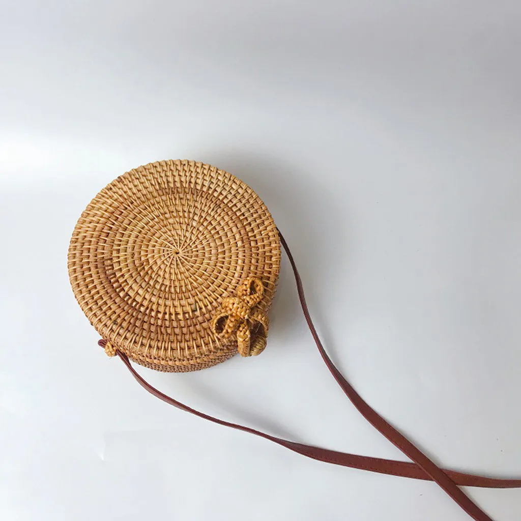 Круглая плетеная пляжная сумка из ротанга в стиле ретро