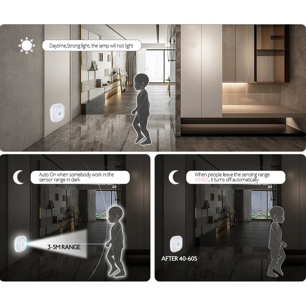 Напоминание, этот индукционный Ночной светильник будет работать только в темной среде, пожалуйста, проверьте его в темной среде.