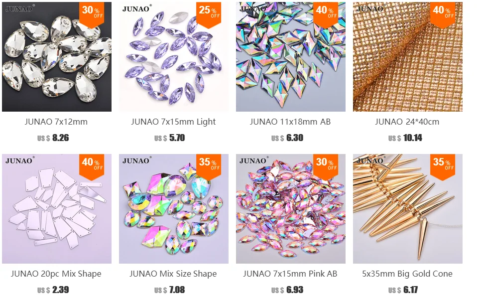 JUNAO смешанный размер форма не пористые зеркальные стразы с плоской задней частью Акриловые стразы
