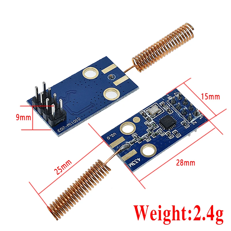 Описание: Высокая чувствительность, дальность обзора, Надежное расстояние передачи до 350 м; Принимает модуляцию FSK, поддерживает модуляцию OOK/ASK/MSK; Несущая частота 433 МГц, другие ISM полосы, такие как 315M/868M/915M могут быть сделаны; Программируемый контроль скорости передачи данных, до 500 кбит/с; Программируемая Выходная мощность управления может достигать + 11dBm для всех диапазонов поддержки; Может гибко распределять различные каналы связи, быстрое переключение частоты может удовлетворить потребность в частотной разделочной системе; Низкое энергопотребление: мощность 11 мвт, получаемый ток <15 мА, ток излучения <25 мА, постоянный ток 2uA; Буфер данных, внезапная передача данных, выход данных RSSI, индикация качества связи; Поддержка автоматического доступа к каналу очистки (CCA) перед передачей, система обнаружения несущей; Мощные цифровые функции, можно использовать дешевый микро контроллер для получения высокой производительности RF системы; Скорость 10K в 350 м Посылка включает в себя: 1 шт. x беспроводной модуль CC1101/433 МГц/2500/NRF 350 м дальность передачи