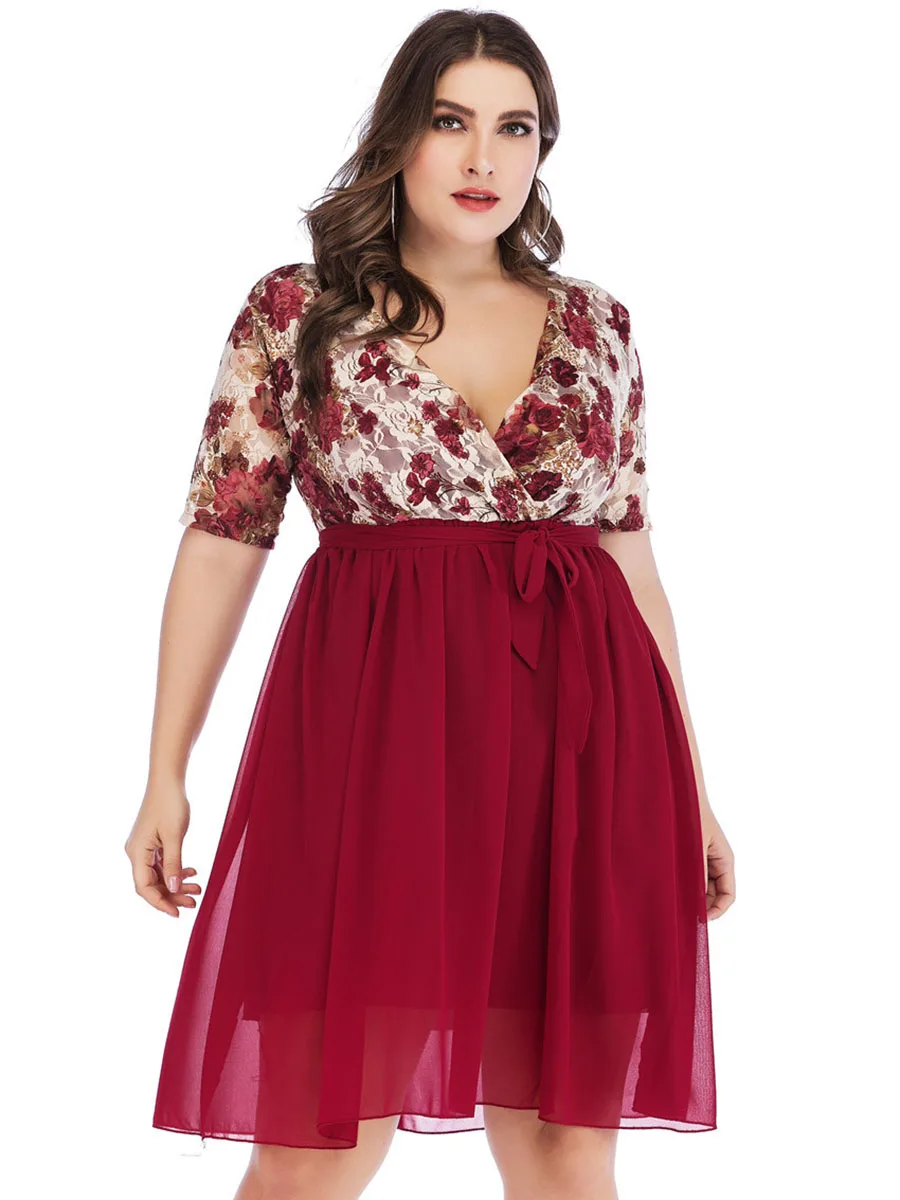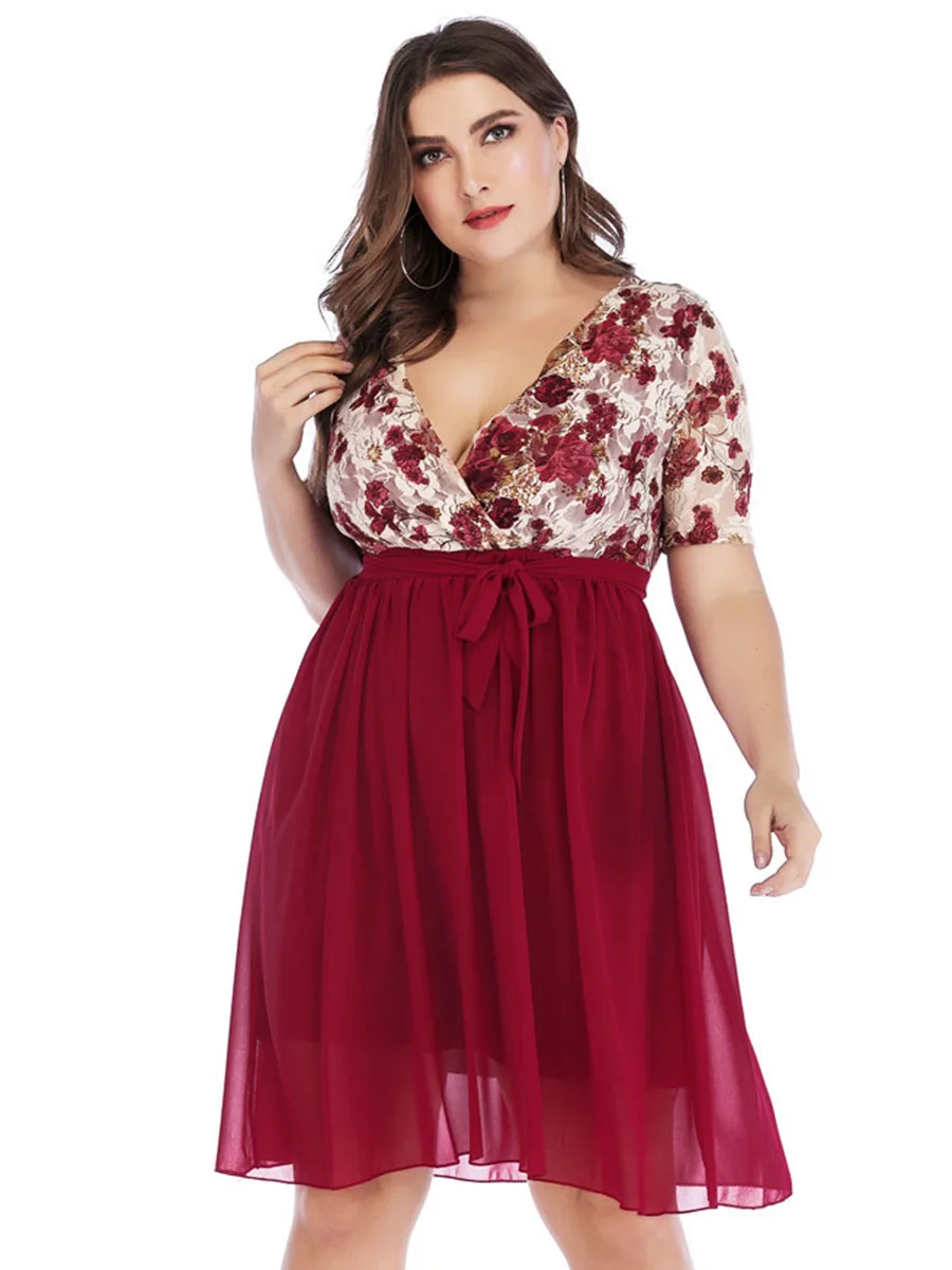 * Описание товара: Летнее женское элегантное короткое платье с коротким рукавом и v-образным вырезом больших размеров