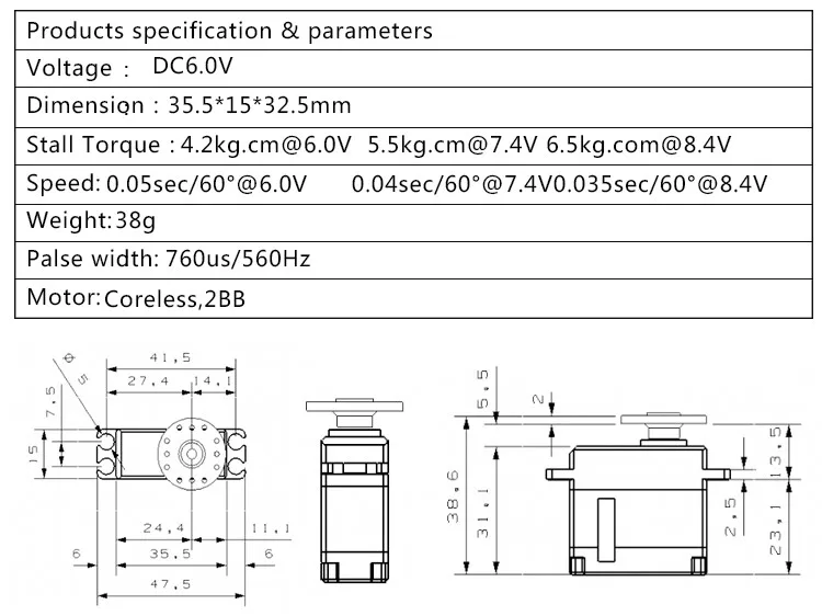 Крутящий момент: 4,2 кг. См 6,0 V