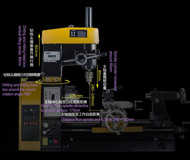 Стандарт CE, безопасная, тихая, небольшая площадь, машина для сверления и фрезерования автомобилей, сверлильная и фрезерная головка может быть поднята и опущена, вращение на 360 °, токарный патрон может быть заменен на 160 мм четыре когти.