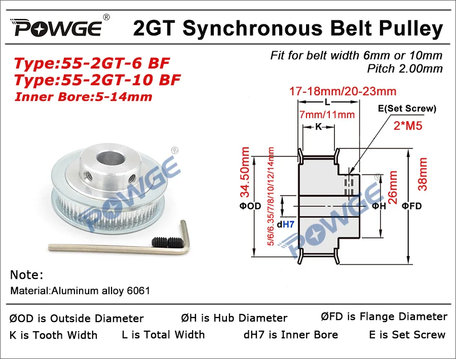 Высокая Torgue Arc GRIP GT алюминиевый сплав55Зубцы2GT синхронный шкив синхронизацииДиаметр 5/6/6.35/7/8/10/12/14 ммШаг 2,0 мм55-2GT-6 BF или 55-2GT-10 BF дляШирина 6 мм/10 ммGT2 открытый ремень синхронизации линейного движенияМаленькийТочность позиционирования люфта3D принтер 55 зубов 55T