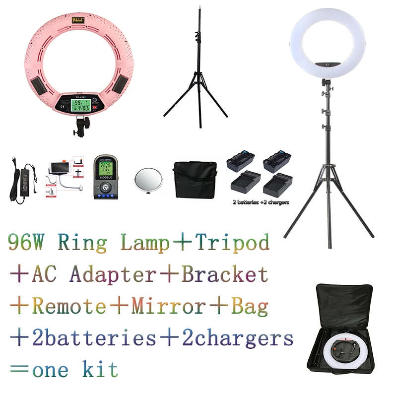 Yidoblo FE-480II двухцветный Регулируемый кольцевой светильник 480 светодиодный светильник для видеосъемки и селфи + 2 м подставка + сумка + аккумулятор