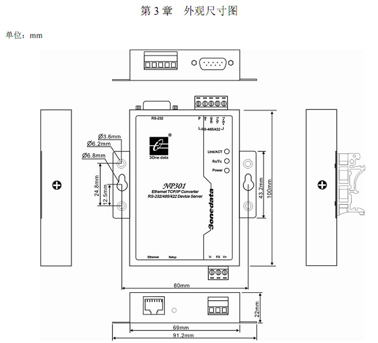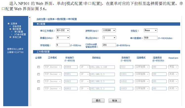 ХарактеристикаДизайн 32-битный процессор ARMSup порт ing RS-232/RS-485/RS-422 последовательный портПоддержка 10/100M (интерфейс ethernet формы)Поддержка 300 bps-115.2 кбит/с скорость линии Неблокирующая связьПоддержка протоколов TCP, UDP, ARP, ICMP, HTTP, DNS и DHCPПоддержка перекрестного шлюза, перекрестная маршрутизацияПоддержка стандартного доступа к приложениям TCP/IP SOCKETSup порт Windows последовательный порт режим драйвераПоддержка виртуального последовательного режима доступа и функции автоматического восстановления сетевого прерыванияПростые в использовании инструменты конфигурации Windows для пакетной установкиПоддержка веб-и последовательных портов и других форм конфигурацииНизкая Мощность дизайнПоддержка установки и установки панелей на din-рейкеРабочая температура-25 - 70 CКраткое введениеNP301-это серийный сетевой сервер, который позволяет последовательным устройствам иметь мгновенные сетевые возможности. Он может централизовать управление децентрализованными последовательными устройствами и хостами через сеть, что является простым и удобным. Поддерживает протоколы TCP, UDP, ARP, ICMP, HTTP, DNS и DHCP и поддерживает Windows Native COM?Кроме того, мощные инструменты управления конфигурацией и веб-интерфейс управления на базе платформы Windows могут направлять пользователей для управления и настройки устройств шаг за шагом. Все устройства могут быть реализованы через сеть или последовательный порт, поддерживающий шлюз и перекрестную маршрутизацию, облегчая пользователям устанавливать ip-адрес, режим сервера и клиента, размер пакета и так далее. Благодаря простым настройкам серийные устройства могут быть немедленно подключены к Интернету.Его внешний вид поддерживает установку на din-рейку и установку панели, что удобно для инженерного использования.LANСтандарт: 10Base-T/100Base-T(X)Протокол: TCP, UDP, ARP, ICMP, HTTP, DNS и DHCPСкорость: 10 м/100 мРежим работы: полный дуплекс или полудуплексРежим работы: TCP сервер, TCP клиент, UDP и реальный COM драйвер и т. Д.Кэширование интерфейса: максимальная поддержка кэширования 16K байтРасстояние передачи: 100 мЗащита интерфейса: защита изоляции 1КВИнтерфейс Форма: RJ45Последовательный портСтандарт: RS-232/RS-485/RS-422Проверка: Нет, даже, нечетная. Космос, МаркБит данных: 5 бит, 6 бит, 7 бит, 8 битСтоп-бит: 1 бит, 2 битСкорость передачи данных: 300 BPS ~ 115 200 BPSУправление потоком: Поддержка управления потоком RTS/CTS или без управления потокомУправление направлением: RS-485 использует технологию автоматического управления потоком данныхНесущая способность: RS-485/422 поддерживает 32-точка опроса окружающей среды (128 по индивидуальному заказу баллов)Расстояние передачи: RS-485/422 терминал 1200 метров, RS-232 порт 15 метровЗащита интерфейса: 1500 Вт Защита от перенапряжения, 15кВ статическая защитаИнтерфейс Форма: RS-232 терминал использует DB9, RS-485/422 терминал использует 5-бит терминал.ПитаниеВходная мощность: 9 ~ 36 В постоянного токаПотребляемая мощность: менее 1 ВтРабочая средаРабочая температура: - 25 - 70 CТемпература хранения: - 40 - 85 СРабочая влажность: 5% ~ 95% (без конденсации)Механическая структураРазмеры (длина, ширина, высота): 100 мм, 69 мм, 22 ммЦвет: синий и белыйМатериал: железо (корпус)Вес: 230 гLANСтандарт: 10Base-T/100Base-T(X)Протокол: TCP, UDP, ARP, ICMP, HTTP, DNS и DHCPСкорость: 10 м/100 мРежим работы: полный дуплекс или полудуплексРежим работы: TCP сервер, TCP клиент, UDP и реальный COM драйвер и т. Д.Кэширование интерфейса: максимальная поддержк