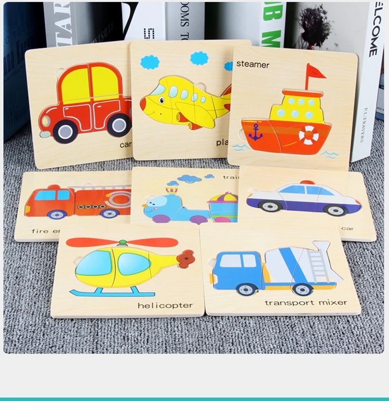 8 шт./компл. трехмерная деревянная головоломка Мультяшные животные фрукты овощи транспорт автомобиль Пазлы Развивающие игрушки для детей Пазлы