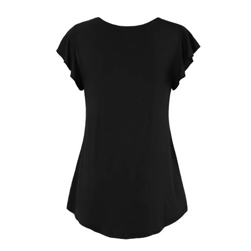 Женская модная повседневная Летняя Сексуальная однотонная хлопковая рубашка с v-образным вырезом и коротким рукавом