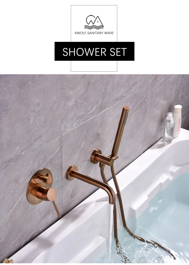 Bathtub Faucet Brushed Rose Gold Chic Wall Mounted Bathroom Shower Faucet Spout Solid Brass 3 Pcs Mixer Tap Shower Bath AH3024C