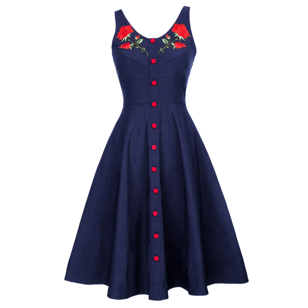 Особенности платья | 1) без рукавов 2) u-образный вырез 3) изысканный украшенный цветами лиф 4)11 красных декоративных пуговиц спереди 5) Скрытая молния сзади 6) подол трапециевидной формы 7) платье хорошо эластичное |