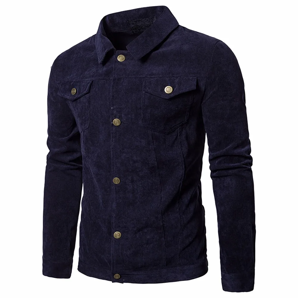 Для мужчин Вельветовые топы с длинными рукавами; куртка с отложным воротником; Верхняя одежда с карманами