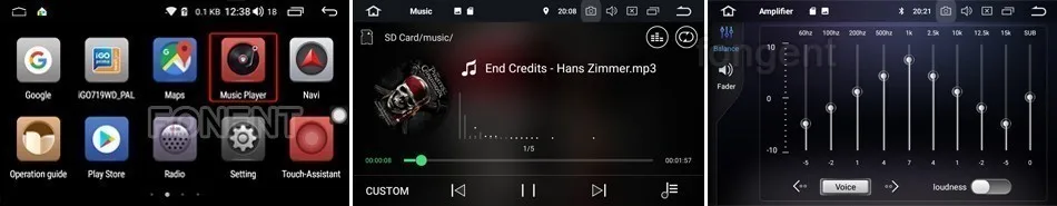 Поддержка эквалайзера 9 эквалайзеров для музыки, видеосъемки альбомов, названия песен, имени певца, лирической информации от проигрывателя по умолчанию.