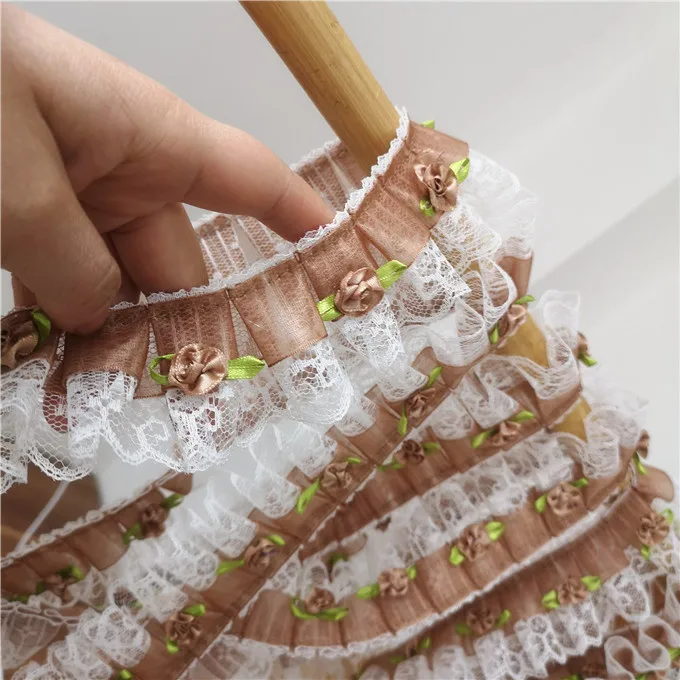 5 см широкая Роскошная кофейная 3D плиссированная шифоновая кружевная ткань шитье декольте Воротник Аппликация кайма оборки отделка платье Гипюр поставки