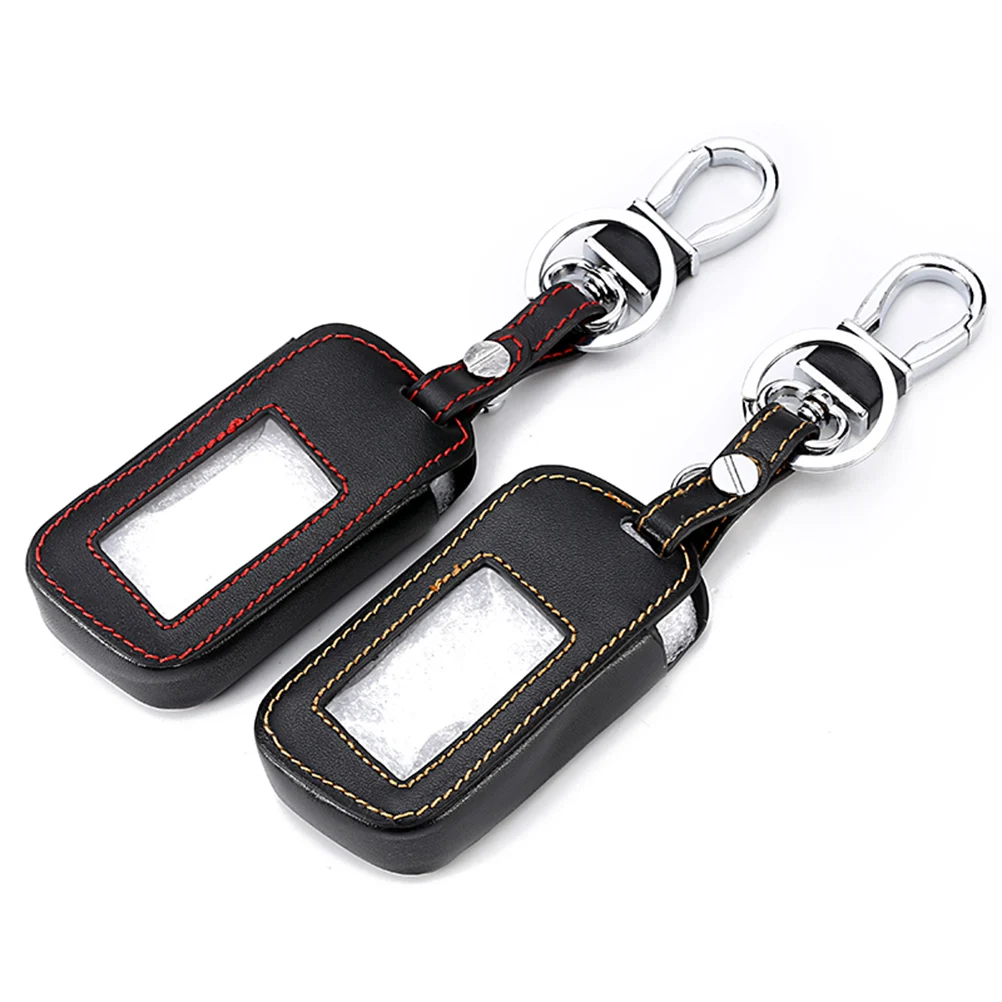 1 х кожаный чехол для автомобильных ключей, чехол-подставка держатель чехол для Starline A93 A63! Автосигнализация с пультом дистанционного управления ЖК-дисплей ключница кошелек (красная нить)