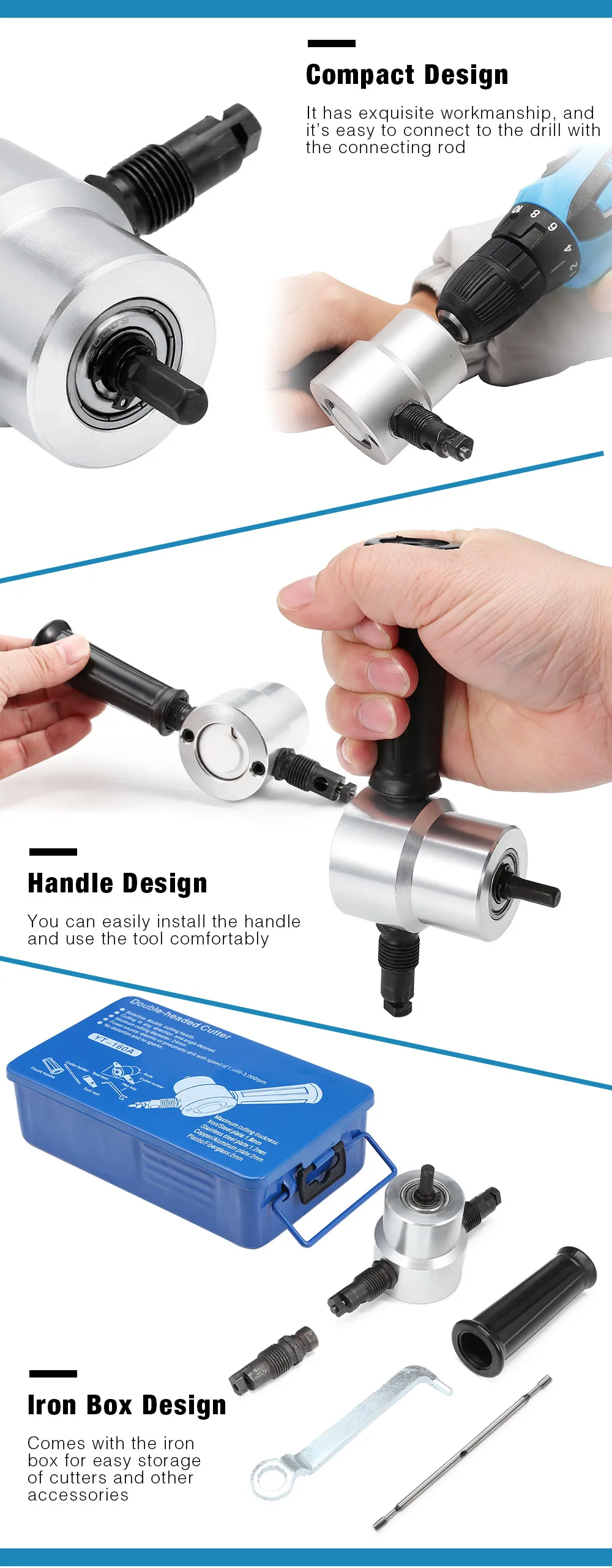 Двухголовочный резак для металлического листа, практичный режущий инструмент, насадка для дрели, регулируемая пластина на 360 градусов