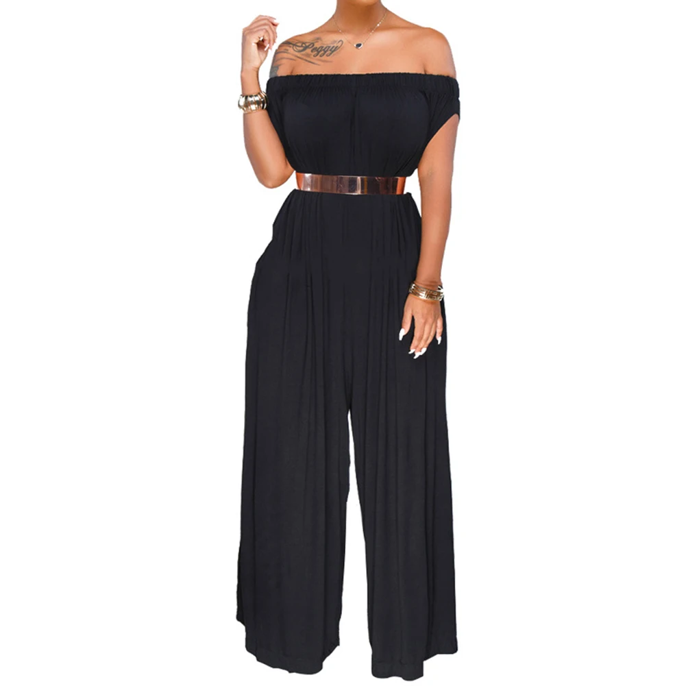 Женский свободный комбинезон с открытыми плечами, повседневный летний комбинезон с широкими штанинами, большие размеры