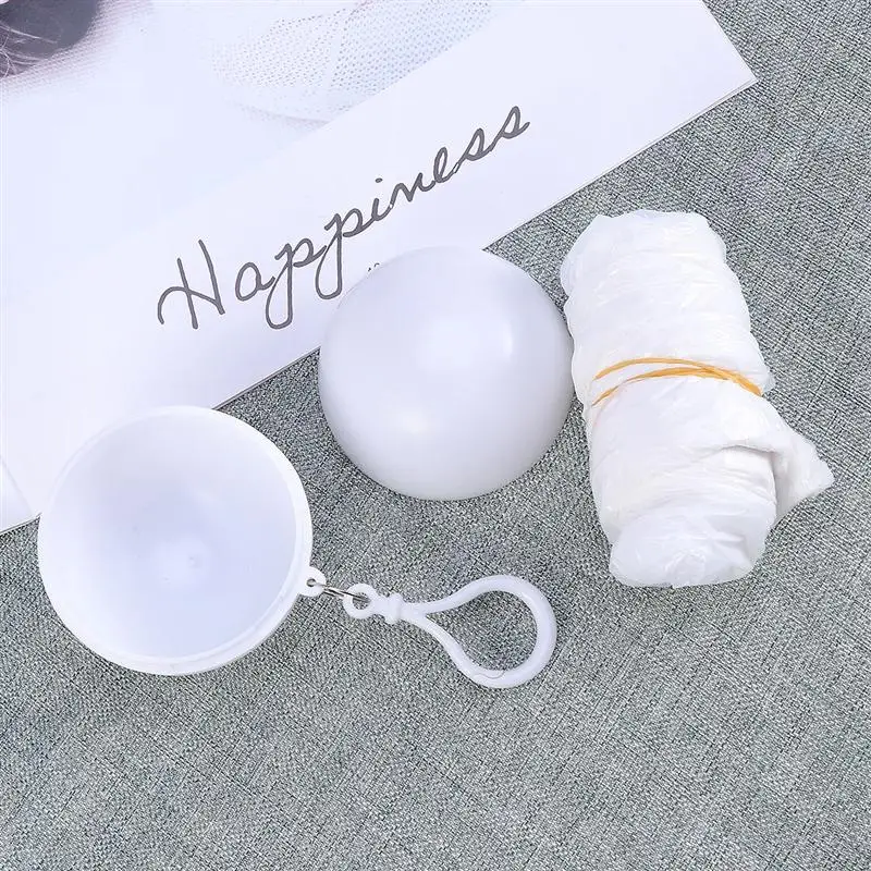 -Одноразовый плащ, легкий и красивый, форма шарика очень креативная, легко носить с собой, Есть крючки на шарике, можно повесить в сумке или в любом месте, чтобы справиться с внезапным дождем. Путешествуйте, выходите и играйте с вами
