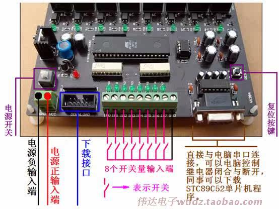 [Краткое Описание]Размер: длина 150 мм, ширина 122 мм и высота 25 мм2. Основные Чипы: микрокомпьютер STC89C52RC с одним чипом3. Рабочее напряжение: 24 вольтВ-четвертых, MCU параллельный порт загрузки линии и USB загрузки линии. (Стандартный 10-контактный скачать интерфейс может использоваться)5. Характеристики: 1. Индикация источника питания.2. Восьмиполосная фотоэлектрическая изоляция приводит к сигналу.3. Восьмистороннее выходное оптическое изоляционное реле управления выходомСтандартный 11,0592 м кристаллический осциллятор.5. Он имеет сброс питания и ручной сброс.6. Поддержка MCU серии AT89SXX.7. С функцией питания, чип 24C08.8. Входной канал имеет светодиодный индикатор.9. На выходе 8 каналов есть Светодиодная индикация.10, 8-way 24V реле управления, контрольное оборудование.11. Управляемый 220V/10A AC оборудования.12. Он имеет функцию последовательной связи (которая может контролироваться ПК).6. Подробных инструкций7. Предоставление соответствующего программного обеспеченияПредоставление процедур и обучающих материалов[Примечания на входной части]