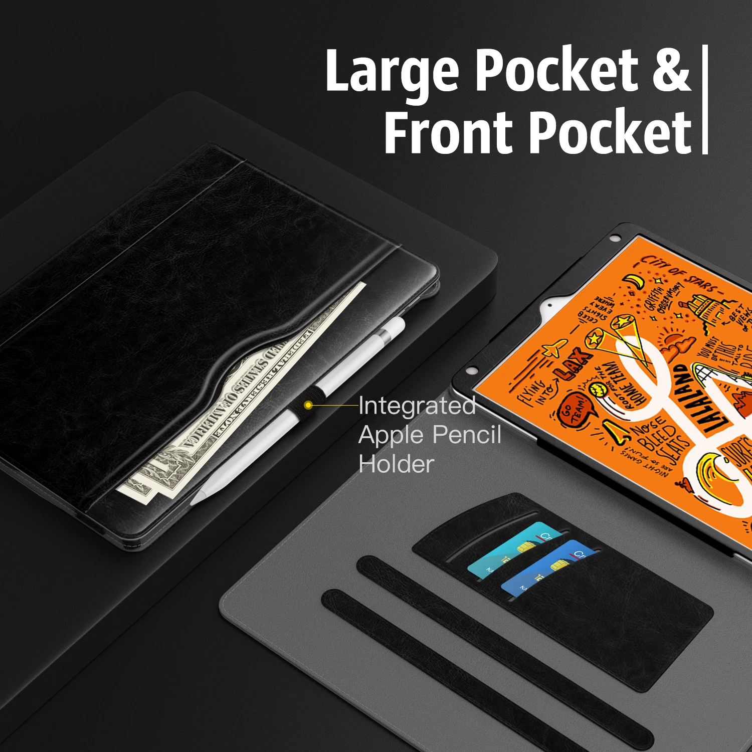 Автоматическое Пробуждение или установка для iPad Mini 5-го поколения 7,9 "2019 (A2133 / A2124 / A2126 / A2125) и iPad Mini 4 2015 (A1538 / A1550) для сна, когда крышка открывается и закрывается. Доступ ко всем функциям и элементам управления. Легкий и защитная. Внешний вид из высококачественной искусственной кожи и мягкий интерьер обеспечивают отличную защиту от ежедневного использования. Несколько слотов могут настроить несколько горизонтальных углов подставки для просмотра фильмов или ввода текста. Он поставляется с боковым карманом, который может хранить другие аксессуары, такие как наличные, кредитные карты, банковские карты и кабели и так далее. Встроенная петля для карандаша Apple, которая гораздо удобнее для карандаша во время движения.