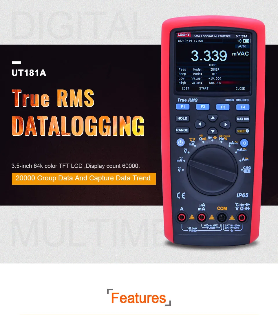 U-NIT UT181A регистрация данных 20000 Цифровые мультиметры истинный RMS DMM Емкостной Измеритель температуры с перезаряжаемой батареей